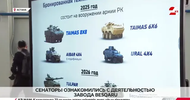 At the moment, these are Aibar 4x4 armored vehicles (based on Cobra II), Ural 4x4 (localized version of Otokar Ural), Taimas 8x8 and 6x6 armored personnel carriers (local versions of Arma 8x8 and 6x6). According to the company's management, the plant's capacity allows it to produce about 100 machines per year (with a growth potential of up to 200), including in the interests of export customers. In 2026, it is planned to start manufacturing the Tulpar armored vehicle and Alpar heavy unmanned armored vehicles, both also developed by Otokar, Besqaru's main partner.: