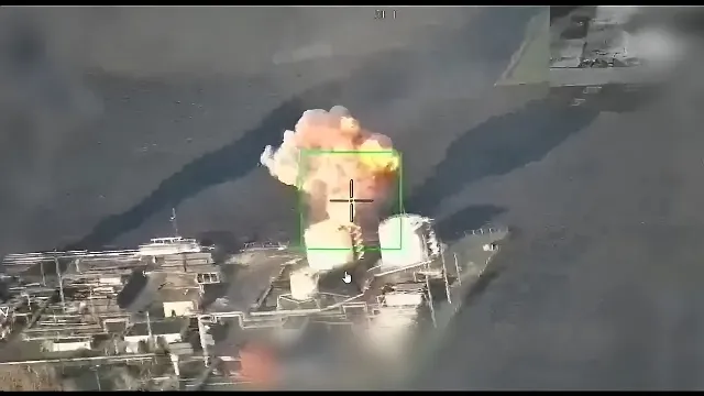 Another video of a Russian drone strike on one of the energy facilities near the village of Moshoka, Sumy region, has been posted online. It is claimed that the footage shows the use of Geran-5 jet drones on the Akhtyrkaneftegaz enterprise on April 4.