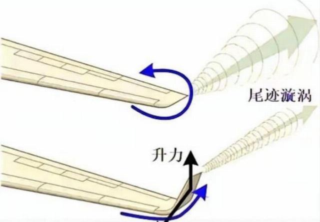 The increased load capacity and controllability at low speeds was made possible by the introduction of winglets into the wing structure. In the figure below, the black arrow shows an increase in lift, and the blue arrow indicates the direction of flow formation, which stabilizes handling when flying in high-altitude conditions (in conditions of variable winds).