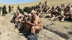 The destruction of Syrian terrorists by a Russian combat robot is shown