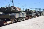 Footage of the transfer of a batch of Abrams M1A1SA tanks across German Magdeburg towards Ukraine is shown