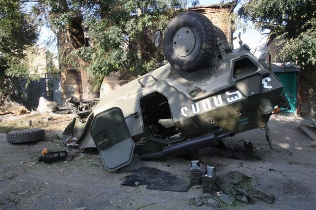 Подбитый грузинский бронетранспортер.