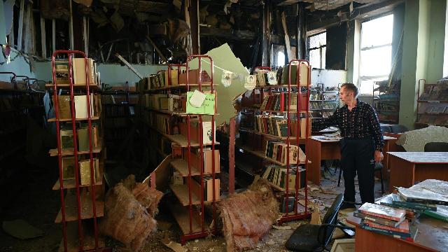 Школьная библиотека в Форосе, поврежденная в результате атаки дронов со стороны ВСУ.