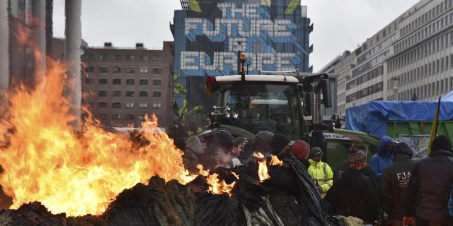 Протест фермеров в Европейском квартале перед встречей министров сельского хозяйства ЕС в Брюсселе, 26 февраля 2024 года.
