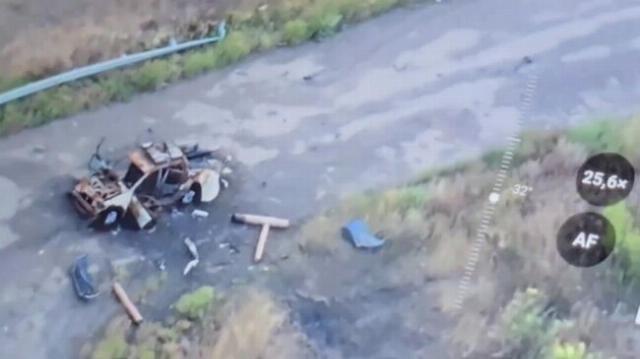 Кадры уничтоженных автомобилей ВСУ на трассе Н-26 до Купянска в Харьковской области.
