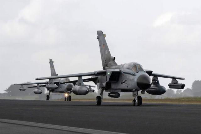 Истребители-бомбардировщики Tornado ВВС Германии готовятся к взлету с авиабазы Ягель.