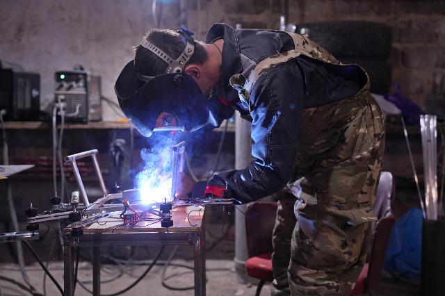 Лучи из дюрали сваривают и доводят до нужного размера.