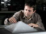Аспирант Университета Дьюка демонстрирует устройство полной акустической маскировки в лаборатории Стивена Каммера.
