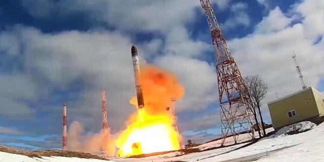 Пуск межконтинентальной баллистической ракеты стационарного базирования Сармат с космодрома Плесецк.