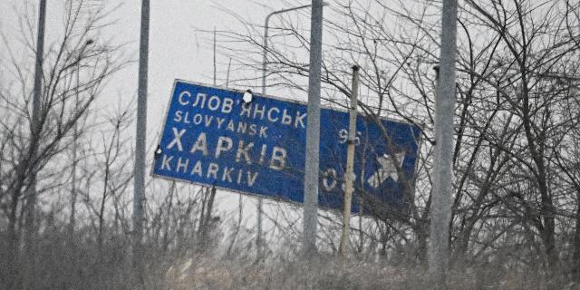 Поврежденный в результате обстрелов дорожный указатель в зоне СВО.