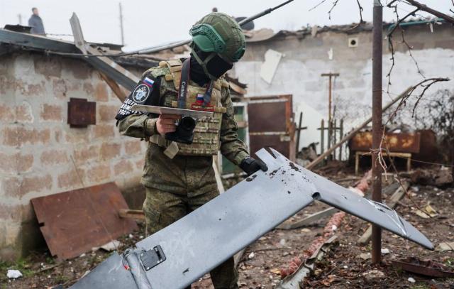 Фрагмент БПЛА, при попадании которого был разрушен жилой дом Дмитрий Ягодкин/ ТАСС.