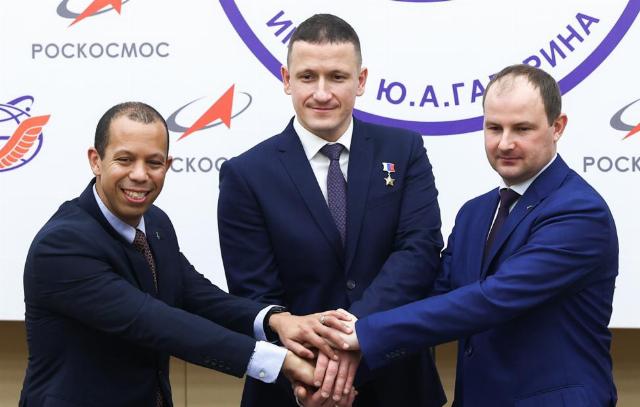 Астронавт NASA Кристофер Ли Уильямс, космонавт Роскосмоса и спецкор ТАСС на МКС Сергей Кудь-Сверчков и космонавт Роскосмоса Сергей Микаев Сергей Булкин/ ТАСС.