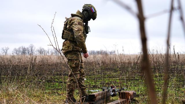 Боец готовит FPV-дрон к полету.