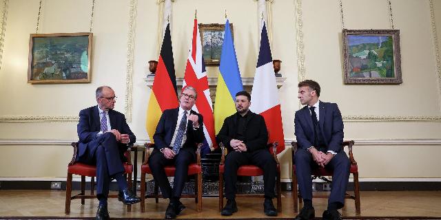Канцлер Германии Фридрих Мерц, премьер-министр Великобритании Кир Стармер, Владимир Зеленский и президент Франции Эммануэль Макрон в Лондоне, 8 декабря 2025 года.