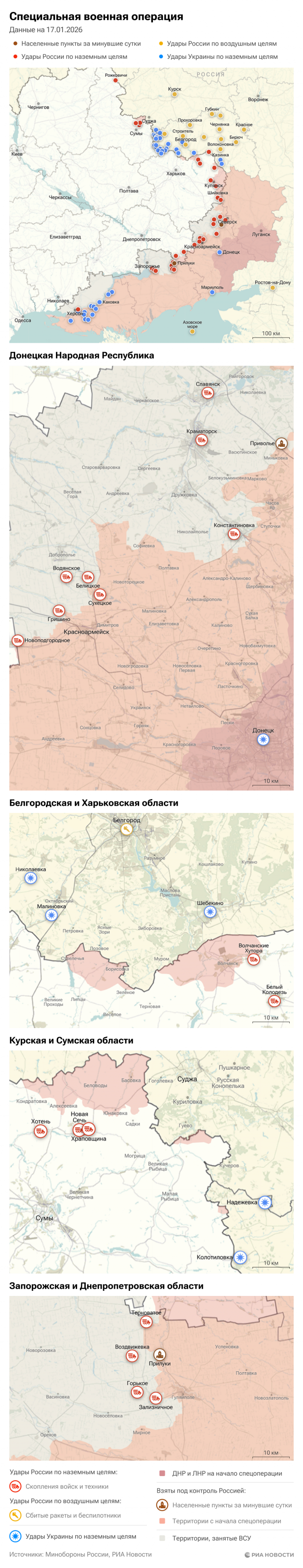 Карта спецоперации Вооруженных сил России на Украине на 17.01.2026.