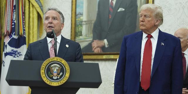 Президент Дональд Трамп слушает выступление специального посланника Белого дома Стива Уиткоффа в Овальном кабинете Белого дома в Вашингтоне.