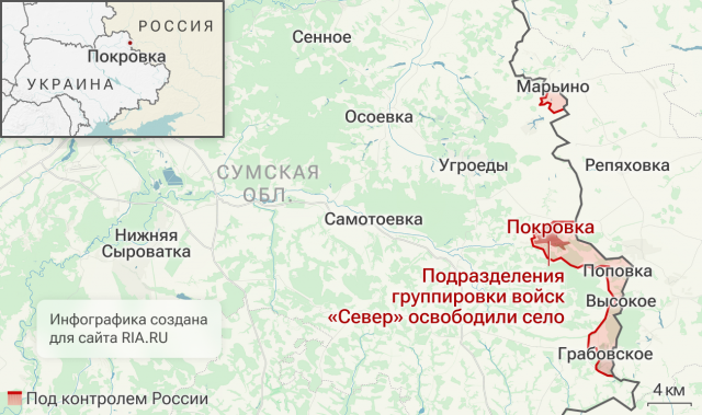Подразделения группировки войск "Север" освободили Покровку в Сумской области.