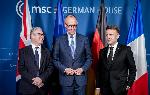 Премьер-министр Великобритании Кир Стармер, канцлер ФРГ Фридрих Мерц и президент Франции Эмманюэль Макрон.