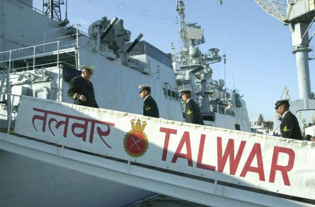 Индийские моряки поднимаются на борт фрегата «Талвар», построенного в ОАО «Балтийский завод» по заказу Индии и торжественно переданного сегодня ВМС этой страны, 18 июня 2003 год.