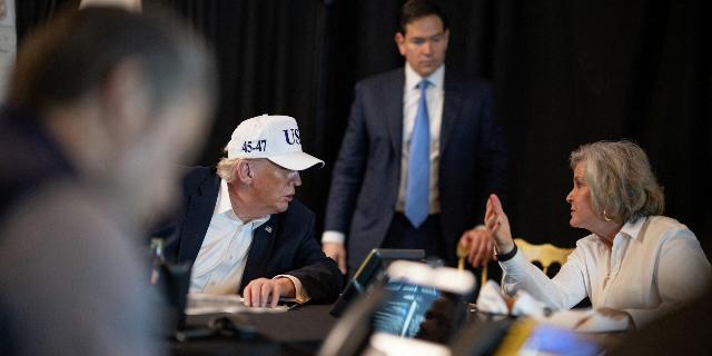 Президент США Дональд Трамп беседует с главой администрации Белого дома Сьюзи Уайлс и госсекретарем Марко Рубио во время военной операции в Иране в резиденции Мар-а-Лаго. Флорида, США, 28 февраля 2026 года.