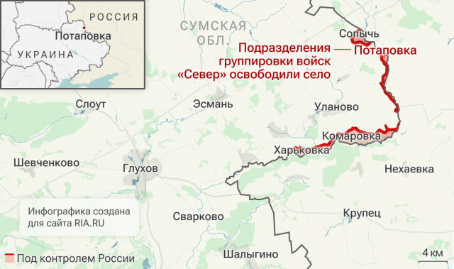 Подразделения группировки войск "Север" освободили Потаповку в Сумской области.