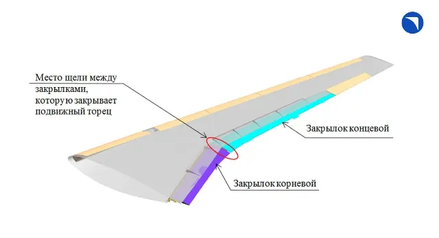 В ОАК разработали новую конструкцию закрылка крыла МС-21, тем самым полностью избавившись от иностранных компонентов с заменой на отечественные. Кроме того, значительно улучшена аэродинамика самолета и увеличена подъемная сила крыла.