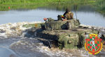 Танки и БМП-2 120-й и 19-й гвардейских отдельных механизированных бригад проходят испытание водой на Березине.