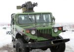 Разработанный ПАО "Завод "Ленинская Кузница" (Киев) дистанционно управляемый "облегченный боевой модуль" ОБМ "Киборг", установленный на произведенную тем же предприятием переделку грузовика ГАЗ-66 в "хаммероподобный" "полубронированный" автомобиль. 23.01.2015.
