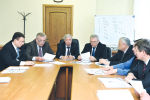 Совет НАПП за обсуждением содержания письма Президенту РФ: ген. директор ОАО «АПЗ» Олег Лавричев, ген. директор НАПП Валерий Цыбанев, вице-губернатор, первый заместитель председателя Правительства Нижегородской области Владимир Иванов, заместитель губернатора, заместитель председателя Правительства Нижегородской области Евгений Люлин, руководители предприятий – членов НАПП. (Фото Елены Галкиной.).
