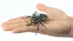 Жук-киборг с установленным рюкзаком с электронным оборудованием.