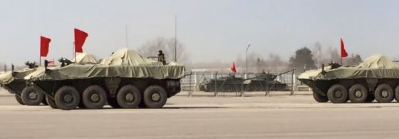 Бронетранспортеры ВПК-7829 на колесной бронированной платформе «Бумеранг» во время репетиции московского Парада Победы 9 мая 2015 года. Алабино, 27.03.2015.