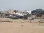 Поврежденные ураганом штурмовики Су-25 ВВС Чада - видны самолеты Су-25 с чадской регистрацией TT-QAI и Су-25УБ с регистрацией ТТ-QAM. Всего Чад с 2008 по 2013 годы получил с Украины восемь Су-25 и два Су-25УБ, из которых два Су-25 были к 2017 году потеряны. Нджамена, 01.07.2017.