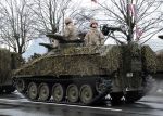 Бывший британский бронетранспортер FV103 Spartan семейства CRV(T) латвийской армии, оснащенный пусковой установкой противотанкового ракетного комплекса Rafael/EuroSpike Spike-LR, на военном параде в Риге, 18.11.2016.