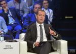 Председатель правительства РФ Дмитрий Медведев на международном форуме Открытые инновации в Сколково. 16 октября 2018.