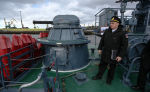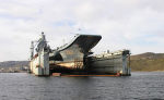 Тяжелый авианесущий крейсер Северного флота "Адмирал Кузнецов" в плавучем доке на 82-м судоремонтном заводе.