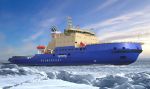 Проектное изображение линейного дизель-электрического ледокола проекта 21900М2 мощностью 18 МВт, заказанного ФГУП "Росморпорт" на ОАО "Ленинградский судостроительный завод "Пелла".