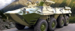 Первый опытный образец БТР-90 на выставке в Нижнем Новгороде, 1994 год. Хорошо видна башня с комплексом вооружения от БМП-2. Справа стоит главный конструктор бронетранспортёра А.Г. Масягин.