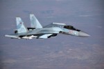 Истребитель Су-35С (бортовой номер "64 красный") из состава группировки ВКС России в Сирии сопровождает президентский самолет Ил-96-300ПУ(М1).