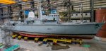 Морской тральщик-искатель мин М 41 Quorn типа Hunt ВМС Великобритании на ремонте в эллинге судоремонтного центра Minor War Vessels Centre of Specialisation корпорации ВАЕ Systems в Портсмуте, декабрь 2016 года. Ремонт корабля так завершен и не был, и в декабре 2017 года тральщик Quorn был исключен из состава британского флота, а теперь продан Литве.