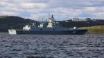 Контр-адмирал в отставке, кандидат технических наук Всеволод Хмыров, президент РФ Владимир Путин, министр обороны РФ Сергей Шойгу, вице-премьер РФ Юрий Борисов и министр промышленности и торговли РФ Денис Мантуров на церемонии закладки двух серийных фрегатов проекта 22350 «Адмирал Амелько» и «Адмирал Чичагов» на судостроительном заводе «Северная верфь». 23 апреля 2019 года.