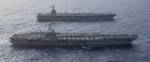 Корабли USS Gerald R. Ford (слева) и Harry S. Truman (справа) на совместных учениях.