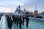 Из большого похода в Арктику, а потом и Атлантику в главную базу Северного флота вернулся большой противолодочный корабль "Североморск". Экипаж встречал командующий СФ Герой России вице-адмирал Александр Моисеев. Он, согласно флотской традиции, вручил командиру корабля капитану 1 ранга Анатолию Кожурову жареного поросенка.