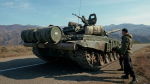 Военнослужащие российских миротворческих сил рядом с танком недалеко от границы с Арменией.