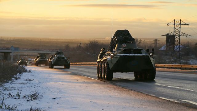 Колонна военной техники российских миротворцев в Самарской области на пути в Нагорный Карабах.
