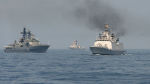 Совместное маневрирование индийских и российских военных кораблей во время военно-морских учений "ИНДРА - 2014".