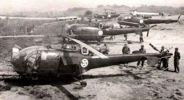 Четыре «Алуэтта» на полевом аэродроме на севере Анголы, 1965 год.