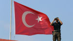 Турецкий военный на фоне флага. Архивное фото.