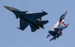 Истребители Су-30СМ "Русских витязей" во время показательных выступлений в Бахрейне, 2018 год.
