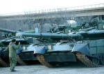 Модернизированные танки Т-80БВМ, поступившие на переоснащение танкового батальона 64-й отдельной мотострелковой бригады 35-й общевойсковой армии Восточного военного округа в посёлке Князе-Волконское (Хабаровский край), апрель 2021 года.