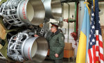 Украинский военный осматривает ядерную ракету перед демонтажем, Днепропетровск, Украина.
